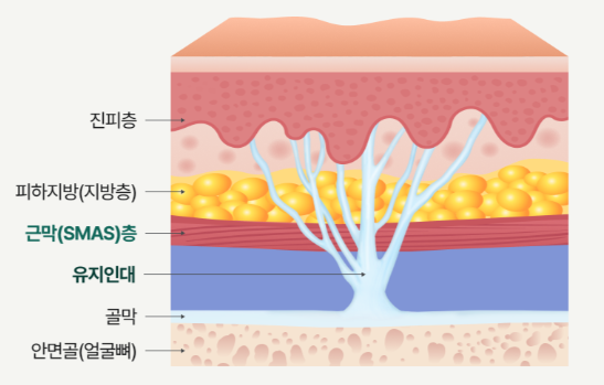 | 작용층 | SMAS층 (근막층) | 진피층 중심 |