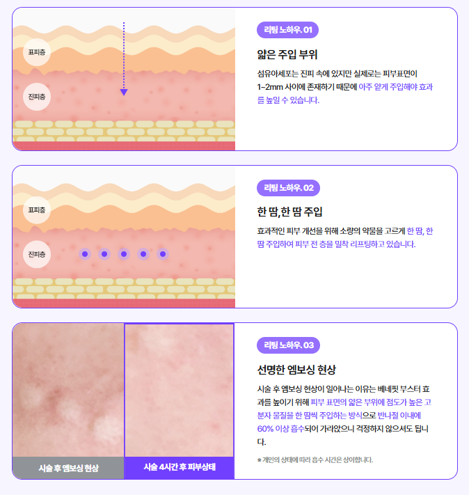 ✔ 시술 직후 일시적 붉어짐, 엠보싱 현상 가능
