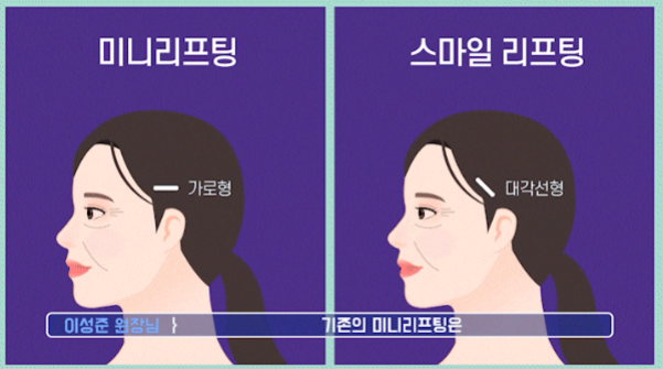 스마일 미니리프팅은 절개선을 사선으로 디자인하여