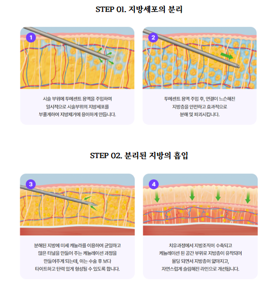 - 투메센트 용액 + 미세 캐뉼라 사용
