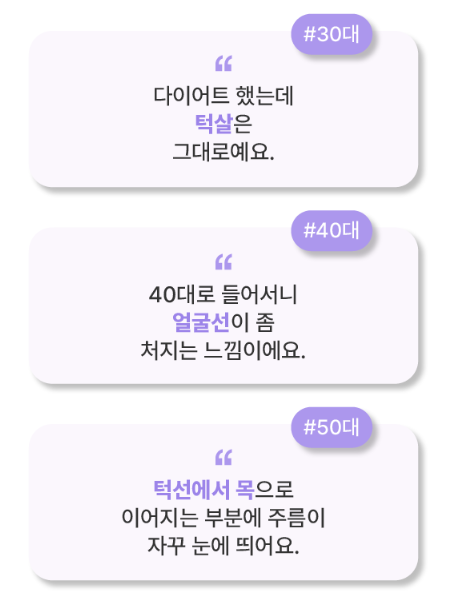 연령대별로 턱선의 문제는 이렇게 다르게 나타납니다: